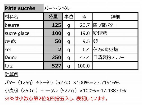 それぞれの材料の役割を復習し、練りこみパイ生地の応用でバターを増やすと