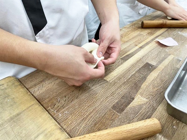 チーズコッペには2種類のチーズを包んでいます。焼成前にナイフでカットすると中からチーズが出てきます。