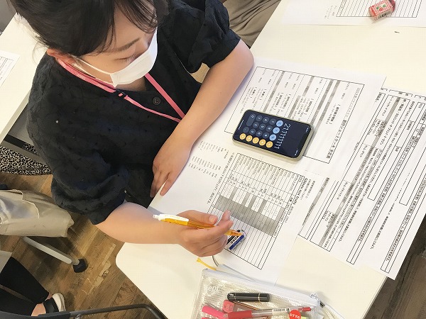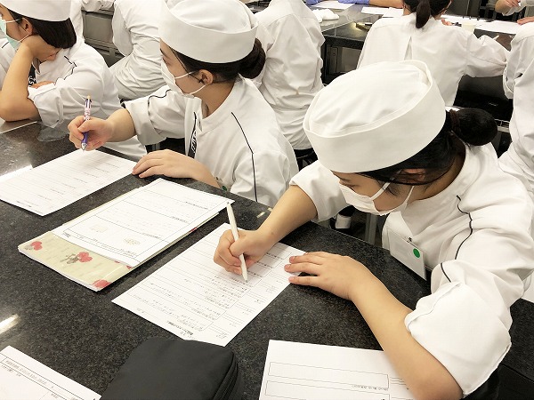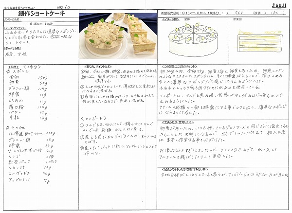 プレゼンテーション後、みんなのショートケーキを試食し、それぞれのお菓子についての感想を記入。