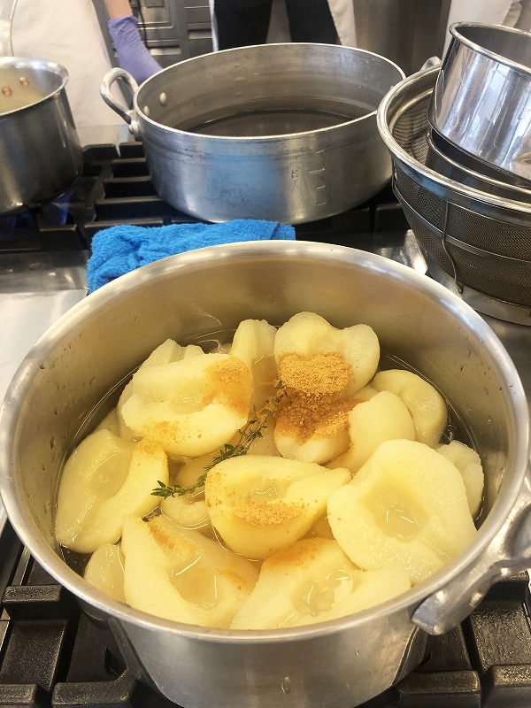 こちらは缶詰の洋梨を使っていますが、シロップにレモンとタイム(ハーブ)を入れて