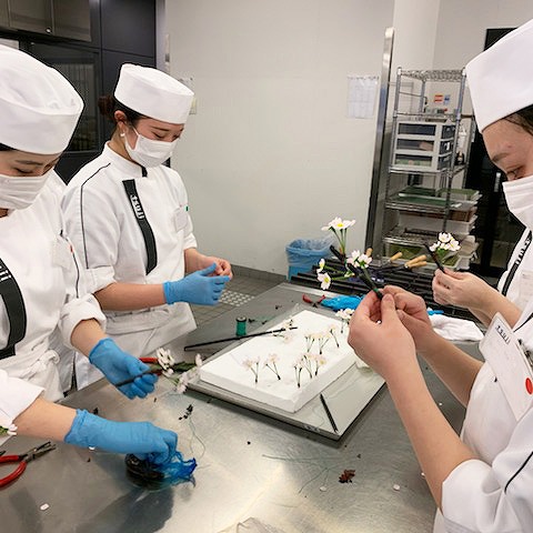 「食べるお菓子」だけではなく、こういった「魅せる(見せる)お菓子」の授業も学校では制作しています。