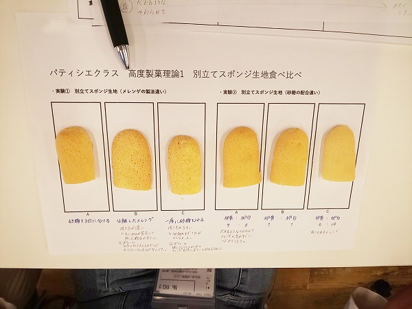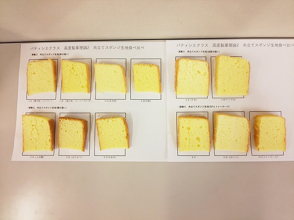 スポンジ生地だけを何種類も作成し、食べ比べをしていました。