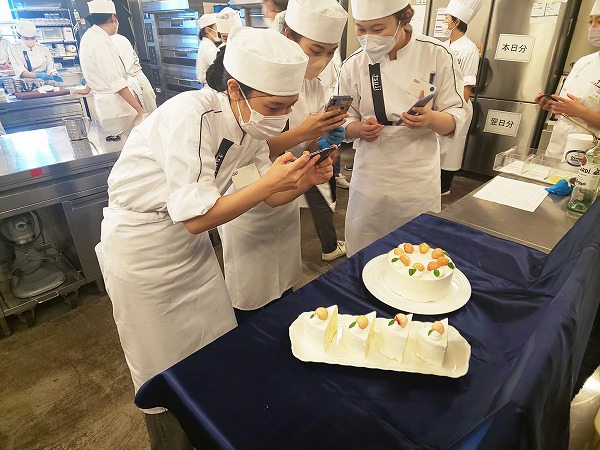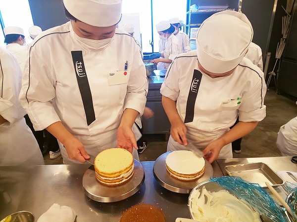 普段の実習では見ることのない、スポンジ生地5枚重ねだったり、
