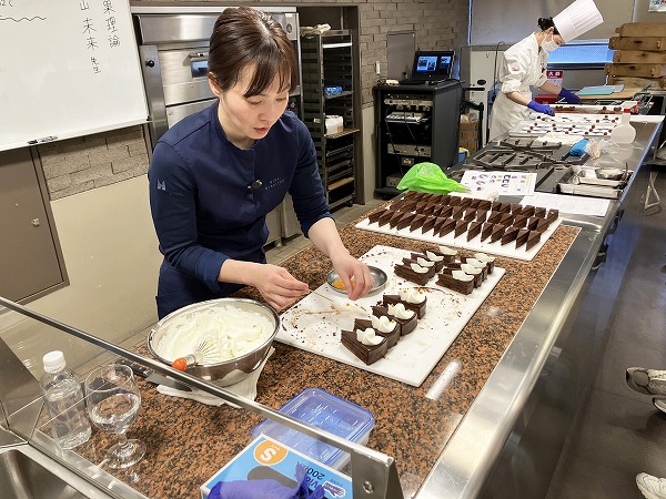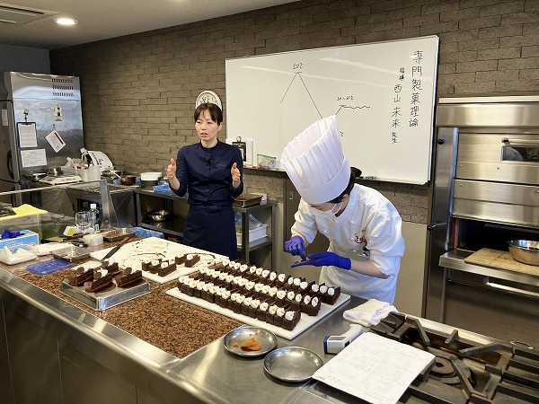 ホテルでの実務経験を元に、学生へお菓子作りの楽しさや難しさ、