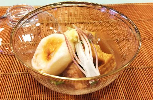 【落語食堂】焼き餅と鶏肉のすっぽん煮/魚素麺と管牛蒡の椀物(悋気の独楽)