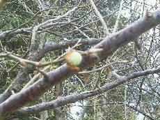 風で枝が折れたり擦れあったりする影響で、梅の実に傷が付くと、そこから透明な蜜のようなエキスが出てきます。