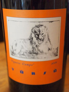 ラベルにある「ヴルスー vürsú」という言葉はこの土地の方言で〝誰からも欲しがられる″という意味だそうです。その名にふさわしく中身のワイン同様に外側も価値のあるものにするべく、わざとボトルを重くしたり、特徴のあるラベルをつけているそうです。