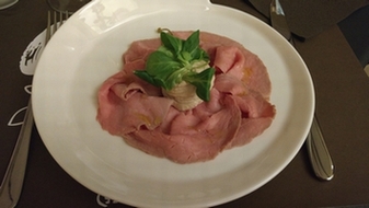 その他、滞在中は「カルネ・クルーダ Carne cruda(仔牛生肉のタルタル)」、「インサラータ・ルッサ Insalata russa(ロシア風サラダ=じゃがいもと角切り野菜のマヨネーズ和え)」、「ヴィテッロ・トンナート Vitello tonnato(仔牛ゆで肉のツナソース添え)」、「アニョロッティ・ダル・プリン Agnolotti dal plin(詰め物入りパスタ)」といった、様々に風味豊かな郷土料理を味わいました。もちろん、お供に地元ワインは必須です。