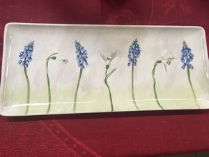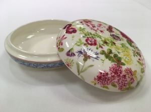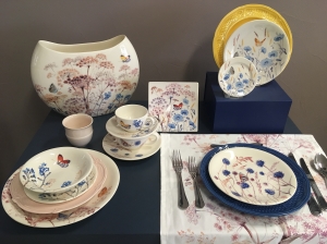 色鮮やかに花や鳥、風景が描かれているものや、青一色で描かれているものなどたくさんの種類があります。お皿、マグカップ、花瓶と様々な形はありますが全体的に厚みがあり柔らかい印象を受けます。私が日本の学校で最初に心を動かされた、白地にムスカリやパンジー、雪割草などが描かれたデザインのお皿もありました。