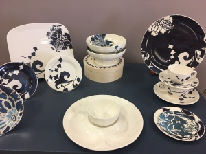 これは『アリス Alice』というシリーズのものだそうです。単体だと落ち着いた印象を受けるデザインですが、一揃いになると、繊細な花としっかりとした青のラインが引き立ち、さっぱりとした大人の雰囲気を醸し出します。