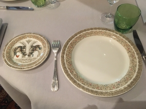 (注8) 位置皿:食卓の席の位置を決めるために用いる皿のこと。そばにはナプキン、フォーク、ナイフ、スプーンが