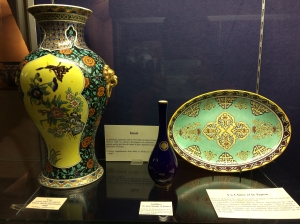 しかし、このジアン社製品のデザインには「これが特徴」と言えるものがありません。というのも、さまざまな時代・場所でつくられた過去の陶器作品を模倣し、それを手ごろな価格で提供することで人気を集め、確固たる地位を確立してきたからです。次々と有能なアーティストを採用し、主に17~18世紀にかけてみられる過去のユニークで斬新なモチーフや、他のヨーロッパや極東の陶器のデザインを取り入れていきました。賛辞として「模造の芸術」と言われることもあるくらい、本当に多種多様なデザインが存在します。併設の博物館では、時代ごとにブームとなったさまざまなスタイルのジアン焼きを追いながら、ジアン焼きの変遷をたどることができます。