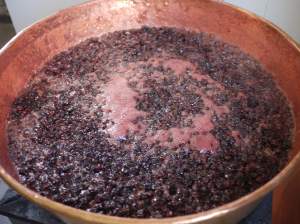 この村のパティスリー『クラカダKRAKADA』では、村で収穫されたサクランボを使用して、ジャムやリキュール、そしてそのジャムを使ったガトー・バスクを作っています。私が訪ねた日も、たっぷりのサクランボが入った大きな鍋が火にかけられていました。