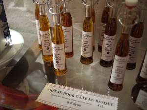こちらの博物館にはブティックが併設されていて、大小のガトー・バスクが売られているのはもちろんのこと、ガトー・バスクの中に入れるカスタードクリームに使うための、ヴァニラのさやを漬け込んだラム酒などの商品(下の写真)が並んでいます。