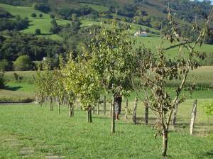 イッツァス村で見かけた素朴なガトー・バスク 高い丘に植えられたサクランボの木々.