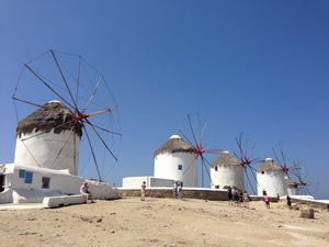 (右)ミコノス島(注1)、アノ・ミリの丘の風車