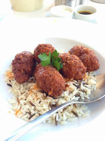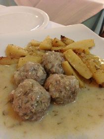 こちらも牛ミンチ肉でミートボールを作りますが、トマトソースで煮込んだものです。僕の食べたお店では付け合わせが塩ゆでした米だったので、ミートボールにお米は入っていませんでした。