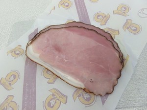 現在のドイツでは七面鳥などもハムの材料として使われ、部位も腿肉に限定されていませんが、脂身の少ない塊の肉がハムの材料として使用されます。