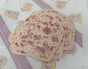 腸詰めではなく、チーズを成型するときのように型につめて焼いたもので、フライシュケーゼ Fleischkäse(直訳すると、肉のチーズ)と言います。細挽きのソーセージの生地の中に色とりどりのピーマンや、玉葱のチップを混ぜ込むなど応用が利き、そのまま薄切りにしても、厚切りにして焼いても美味しいです。とても面白いアレンジですね。