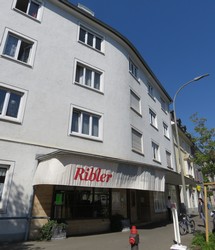 (左)リプラー氏の店の外観。商店街ではなく普通の街角にあります
