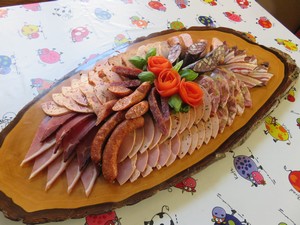 まずはこんな一皿からご覧下さい。リプラー氏が私達をもてなす為にハムとソーセージの盛り合わせを用意してくれていました。