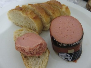 豚の赤身肉をたっぷり使って低温でスモーク、熟成させたソーセージがテーヴルスト Teewurst。テーヴルストのTeeとはお茶の意味で、ティータイムにカナッペなどにして供します。そして豚レバーを使ったものがレーバーヴルスト Leberwurst(レバーソーセージ)です。朝食でも提供されますが、やはり夕刻のビールとの相性が良いように思います。