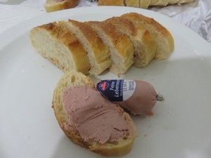 (左)小さなホテルでもこんなに種類豊富!パンのそばにあるチューブ状のものは、ペーストタイプのレバーソーセージです