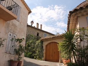 南フランス、コート・ダジュール(注1)の丘の上にある小さな町ムージャン Mougins。映画祭で有名な海沿いの町カンヌから、車で30分程山道を登ったところにあるこの村は、かたつむりのような渦巻き状の小さな路地が入り組む、静かで可愛らしい町です。