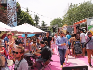 8台のフードトラックでは手軽なホットドックやハンバーガーからお寿司風な屋台、レユニオン島(注3)料理(サモサという揚げ物や、スパイシーな肉の煮込み)など、バラエティに富んだ食が提供されています。