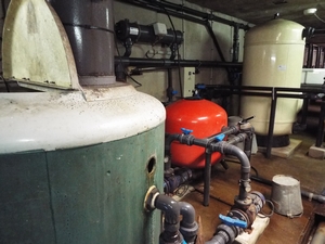 使用する水は横の河川からのもの。ろ過装置3つで余分なゴミ等を取り除き、なるべく自然に近づけるために水温などの調節は行わず循環させています。