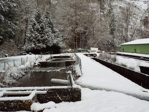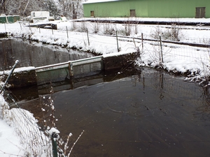 養殖場はシション川流域にあります。この日は一面雪化粧