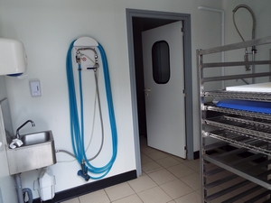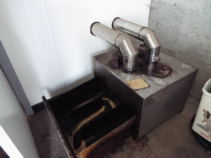 小さなプレハブ小屋の中にマスを処理する場所と燻製場がありました。