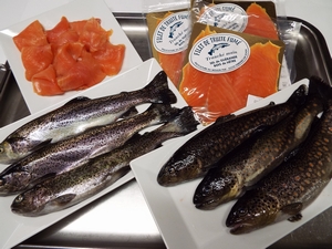 見学後、フレッシュなニジマスとファリオ、そしてそれらの燻製を購入し、試食してみました。