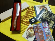 (左)ザルツヴェーデルのバウムクーヘングッズ。ナイフはバウムクーヘン専用のもの