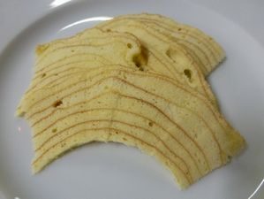 生地のキメが非常に細かく、不均一な層で、本物の木の年輪の様な断面をしています。食べた感じはとてもしっとりとしていて、ソフトな口当たりです。小麦粉と一緒に浮き粉を使っているので、口どけがよく、あっさりとしています。