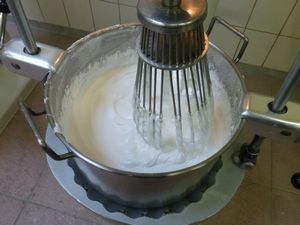 卵黄のベースとメレンゲ、それぞれしっかりと空気を含ませます。