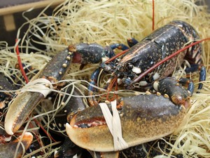 (左)オマール・ブルーとも呼ばれる、高級食材のブルターニュ産オマール