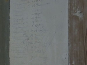 昔のムニエ(製粉職人)が壁に直接書いたメモやイラストも、製粉所の歴史としてそのままにしてあります