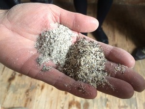 2度目の粉砕を経たソバ粉は同じフロアのもう一つの篩別機にかけられ、同様に分別されます。ここまでの作業で十分細かくなったものは2番挽きのソバ粉として袋詰めします。