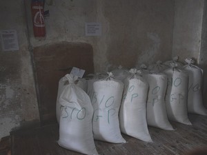 取引先の要望に合わせて、これらの質の違うソバ粉をブレンドし保存します。袋詰めされたソバ粉は、実際は十分乾燥させてから出荷することになるそうです。雨が多く、湿気のあるブルターニュでは乾燥の工程が非常に重要。ガス式の乾燥室でゆっくりと乾燥させます。