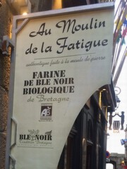 今回の旅の途中、この製粉所のソバ粉をアピールする数々のクレープリーに出会いました。いずれも誇らしげに「『ムーラン・ド・ラ・ファティーグ』製のそば粉使用」である旨を店頭に掲示していました。