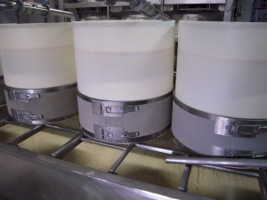 毎日午前1時半には周りの各酪農家から牛乳が届き、3時半からコンテチーズ製造がはじまります。中は活気に溢れていて、大量の牛乳がどんどんチーズに変わっていきます。