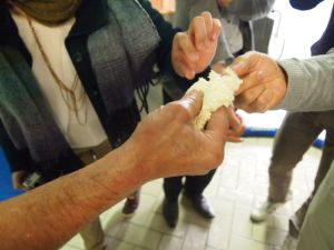 凝固したばかりのコンテを試食。モッツァレッラチーズみたいですごくフレッシュ感があり、美味しかったです