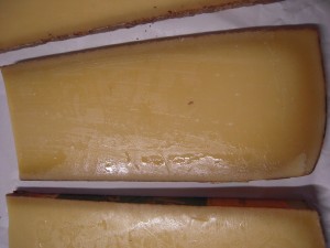 6ヶ月熟成・・・さっぱりしていて、チーズのコクや風味は感じられず、なんとなく物足りなさを感じます。チーズそのものを味わうというよりは料理用といったところでしょうか。価格:1kgあたり10ユーロ