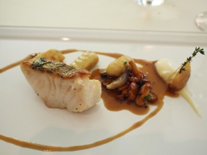 サンドル(白身の淡水魚)をポワレにし、コンテ入りのニョッキが添えてある料理。