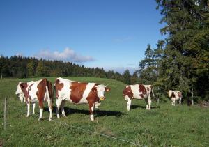 夏の時期には1頭当たり1ヘクタール以上の牧草地で放牧されるとか。なんとも贅沢な飼育方法です。
