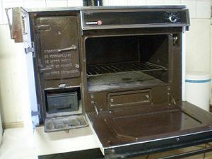 薪がこのオーブンの熱源で、上に鍋を置けばそこでも加熱調理が出来る様になっています。