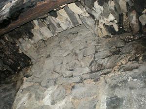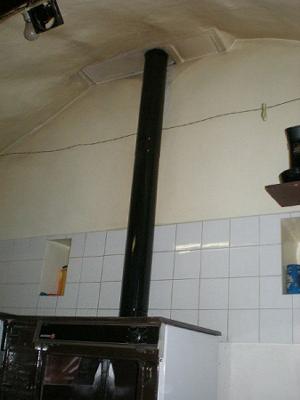 現在は写真のように煙突が直接屋根の外につながっているのですが、石のオーブンの頃は煙突がなく、その代りキッチンの上の屋根だけが他よりも高くなっていて、三角になっています。そして、ぽっかりと穴が開いていたといいます。煙が家に充満しないようにこのような作りになっていたのだそうです。
