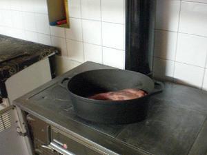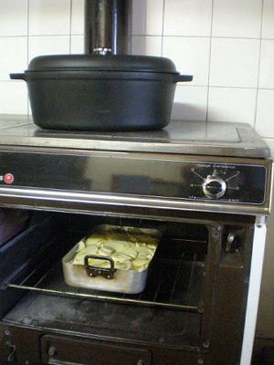 かつて農家をしていたころは農作業や、家畜の飼育に追われて料理をする時間がなく、作る料理は時間短縮のために鍋ごとオーブンに入れて煮込むものがほとんどだったそうです。おいしく煮込んだ料理はオーブンの上で保温しておき、家族それぞれが食べられる時間に食べるという習慣だったそうです。
