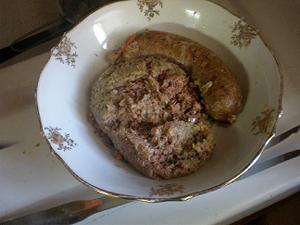 ソーシス・デルブ。焼いているうちに一本はじけてしまったのですが、野菜たっぷりの中身が良く分かります